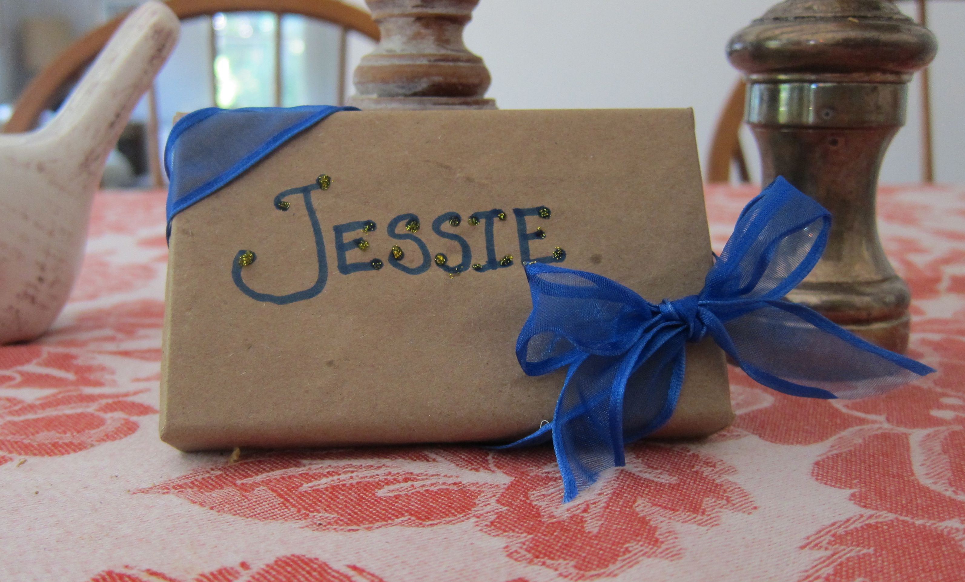 Well, I grooved on the theme of my dinner party — “Friday Night Unplugged” — and I thought PERFECT vehicle for name cards. Here’s the concept: Wrap up each cassette in brown paper (recycled if you’ve got it) and scribble down each guests name in a font remiscent of earlier decades when you believed you were immortal. When guests arrive they see nice little tiny boxes with their names on them. I mean, who doesn’t like a tiny little gift with their dinner? It will be a very fun time figuring out what tape each guest should receive. It will also make for excellent conversation.