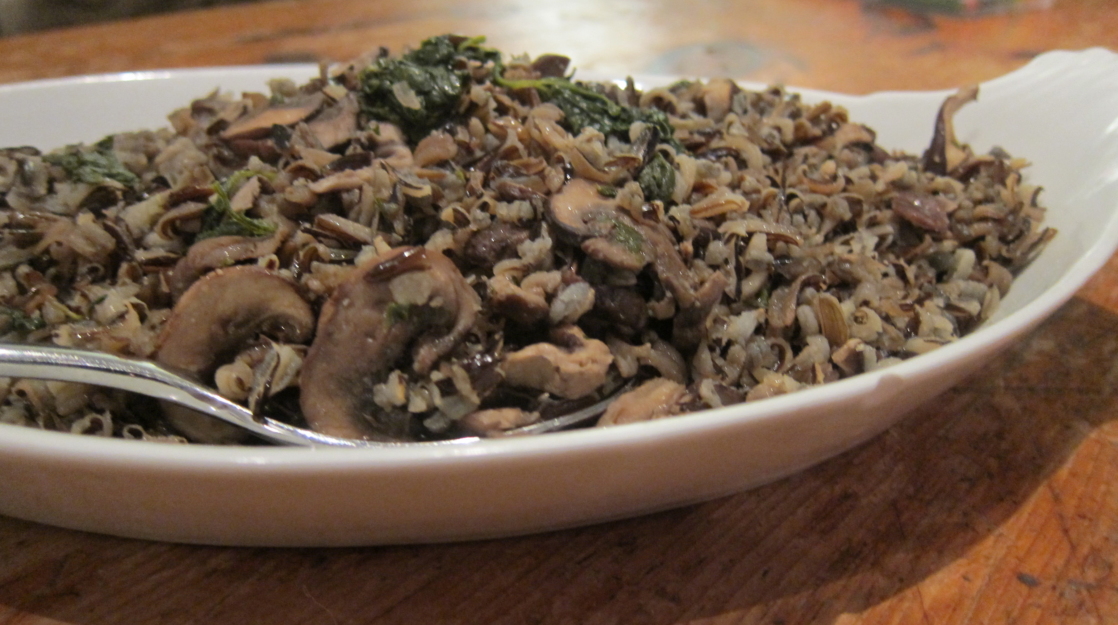 Wild rice is a nutritional powerhouse compared to its cousin, white rice and even beats out it’s other cousin brown rice. With more protein and fiber and less sugar, it is the rice with the lowest glycemic index. If you have Diabetes or Celiac’s Disease or someone you know and love has Diabetes and Celiac’s Disease (some of my family members), wild rice is a good alternative side for those with sugar issues or a wheat intolerance or allergy. It also has vitamins B1, B2, B3 and B9 and includes the minerals iron, potassium, phosphorous, zinc and magnesium. Combine some wild rice with some sauteed spinach and an assortment of whatever wild mushrooms you can find and the result is delicious AND nutritious. I’ve managed to get at least my younger kid to eat it. And my daughter will eat it if I pick out the mushrooms!