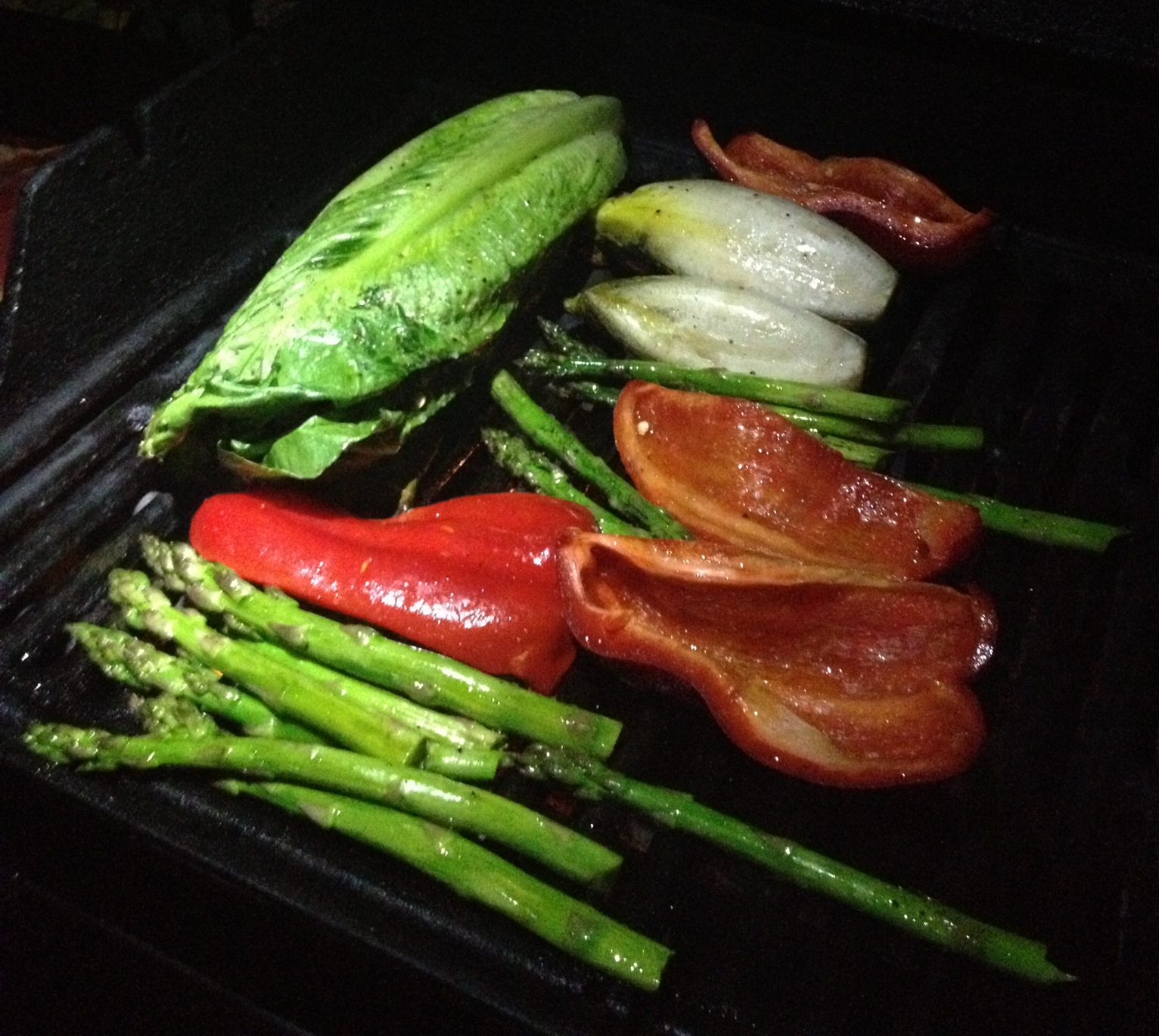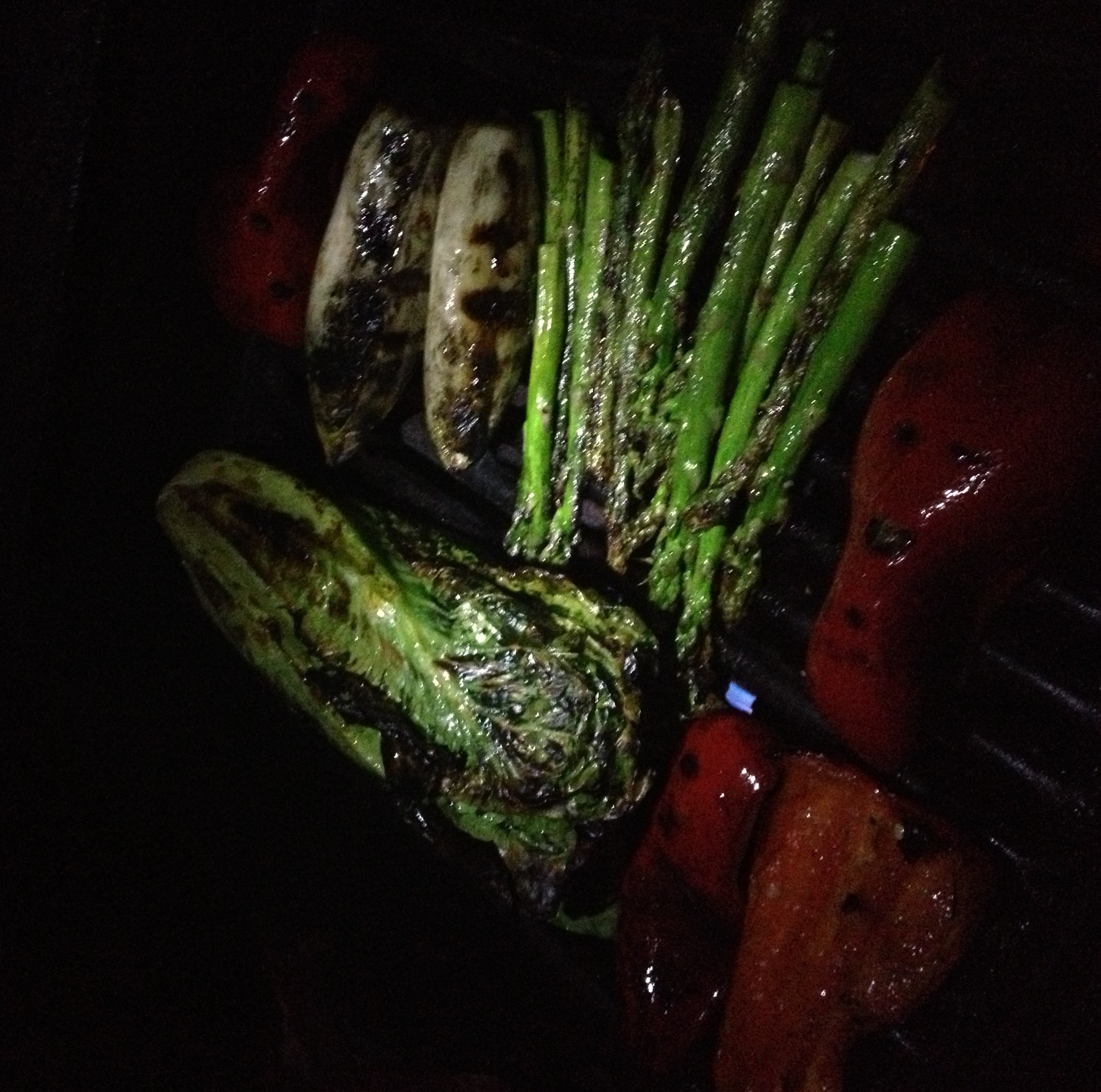 Even if you have power, I highly recommend tossing this assortment of vegetables with some olive oil, sea salt and pepper and grilling them until lightly charred on all sides. The Romaine and Endive in particular were absolutely delicious! We’ll be making this selection again maybe even tonight or when the luxury of power returns.