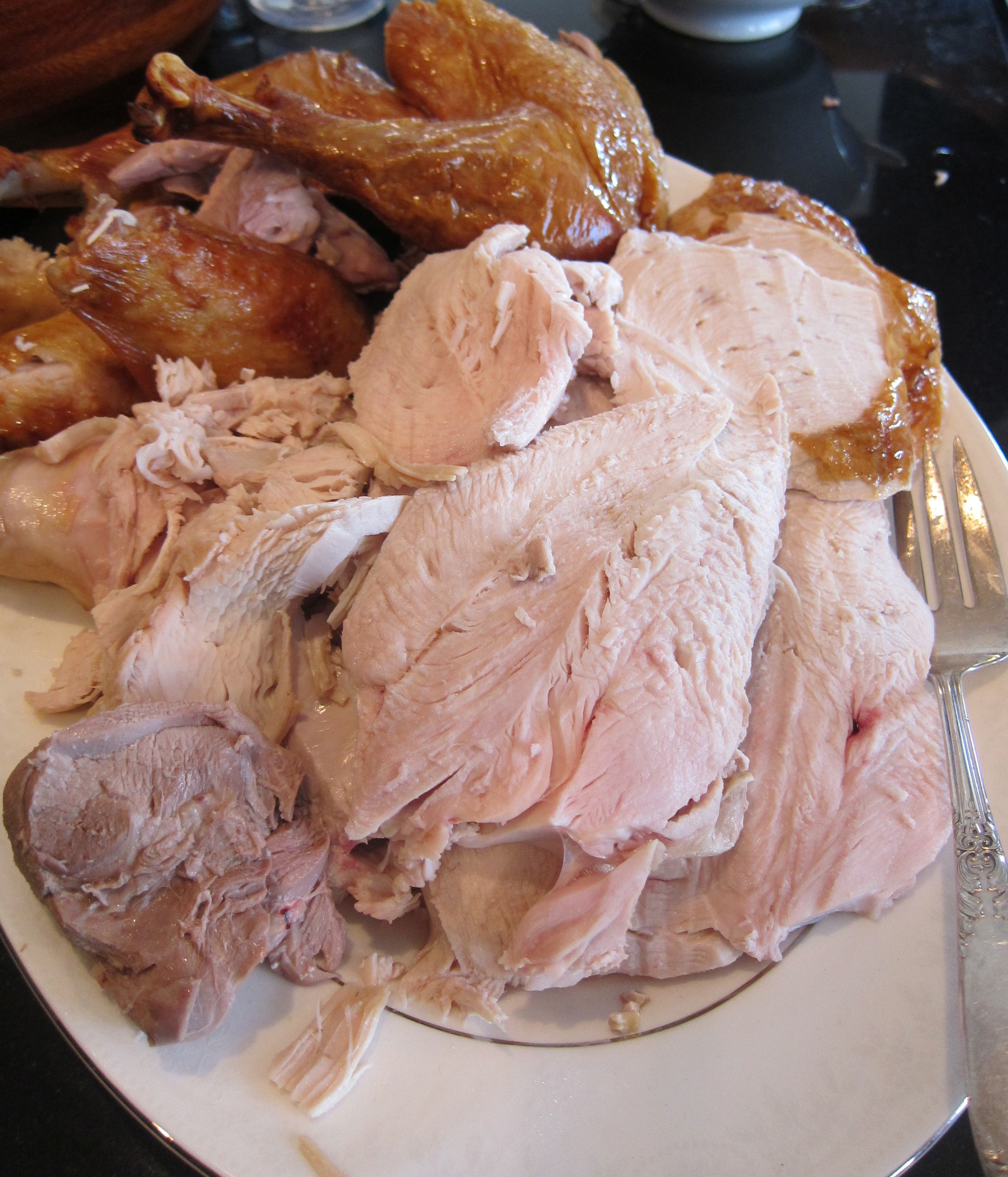 But I think perhaps next year I will go the simple route. This year I had been lured by this crafty way of preparing the turkey. I mean it sounds pretty cool to say that you gave your turkey a briny icy bath before shoving it into the oven at high heat, no? But I’m not sure that the craftiness added all that much for the effort it entailed.