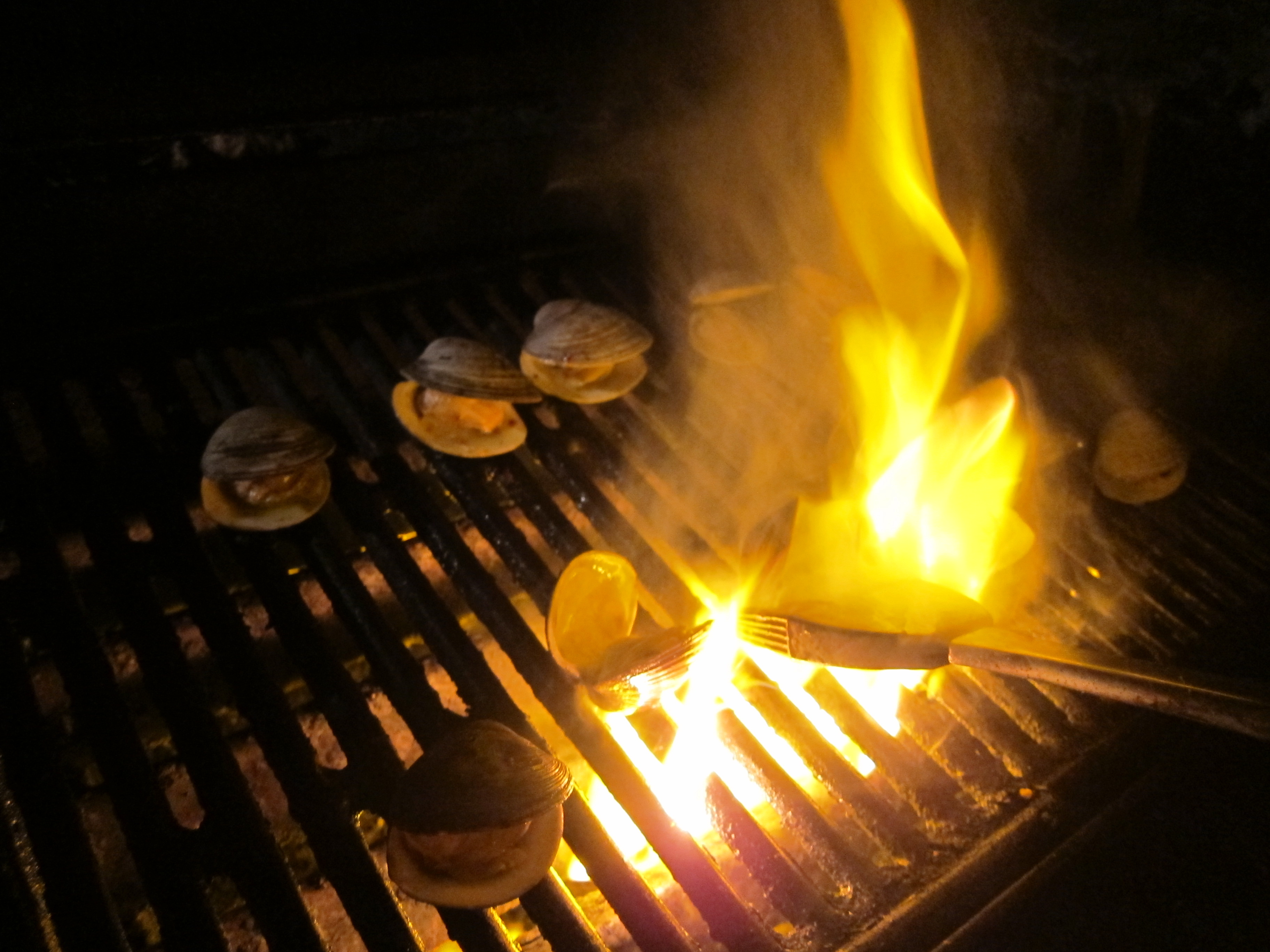 As soon as the fire subsides, take the clams off and serve them pretty quickly, which usually isn’t a problem 🙂