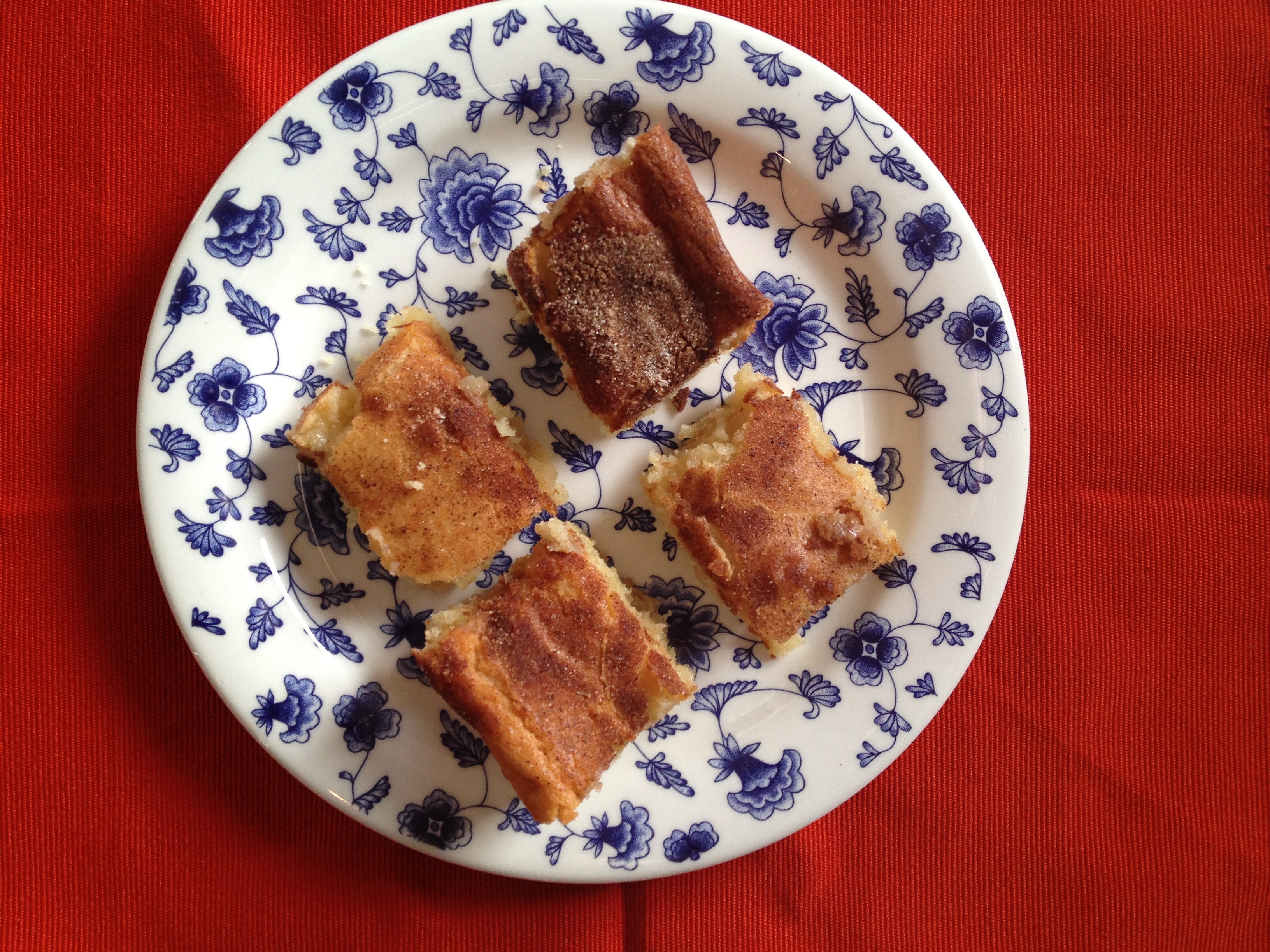 These gooey cinnamon squares are pretty good. They remind me of my grandma who makes the best cinnamon toast ever. These are a sweeter, goo-ier version with even more sugar and butter.