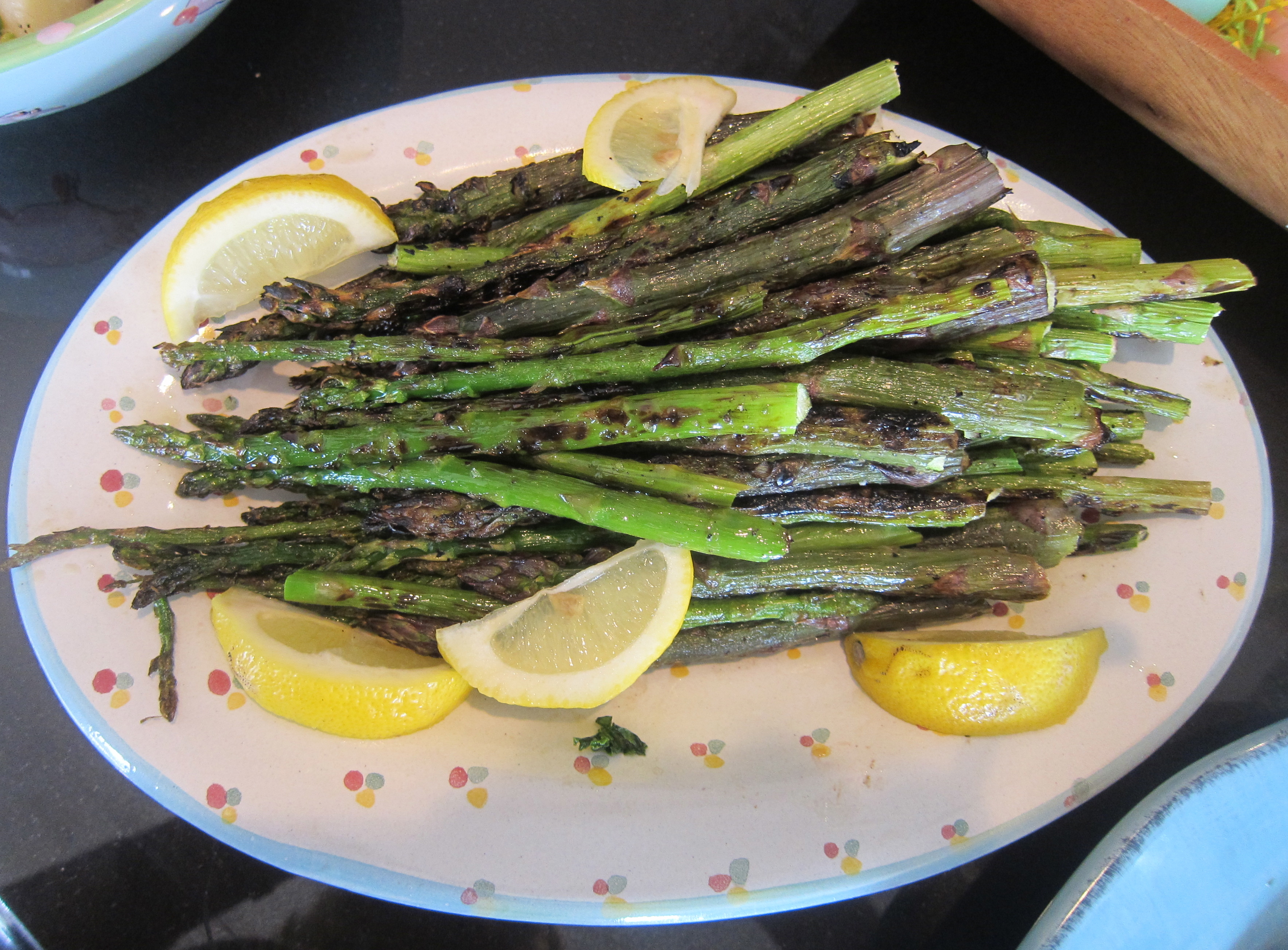 Looks can be deceiving. The thicker stalks are the purple ones, but who knew they’d look identical to the green ones when grilled!!