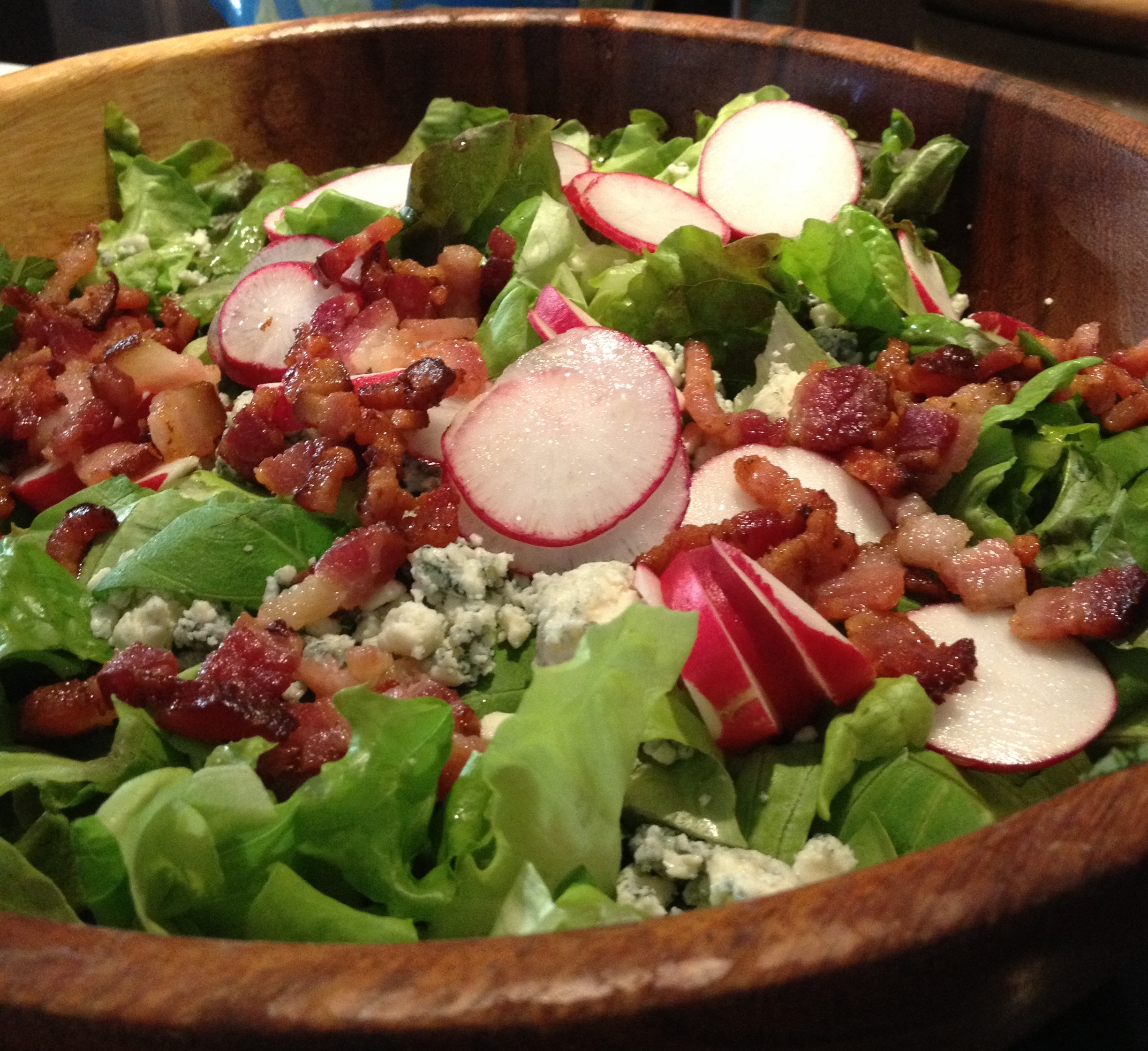 Everything really is better with bacon, particularly center cut bacon. This romaine and bibb lettuce salad with blue cheese and bacon proves the point.
