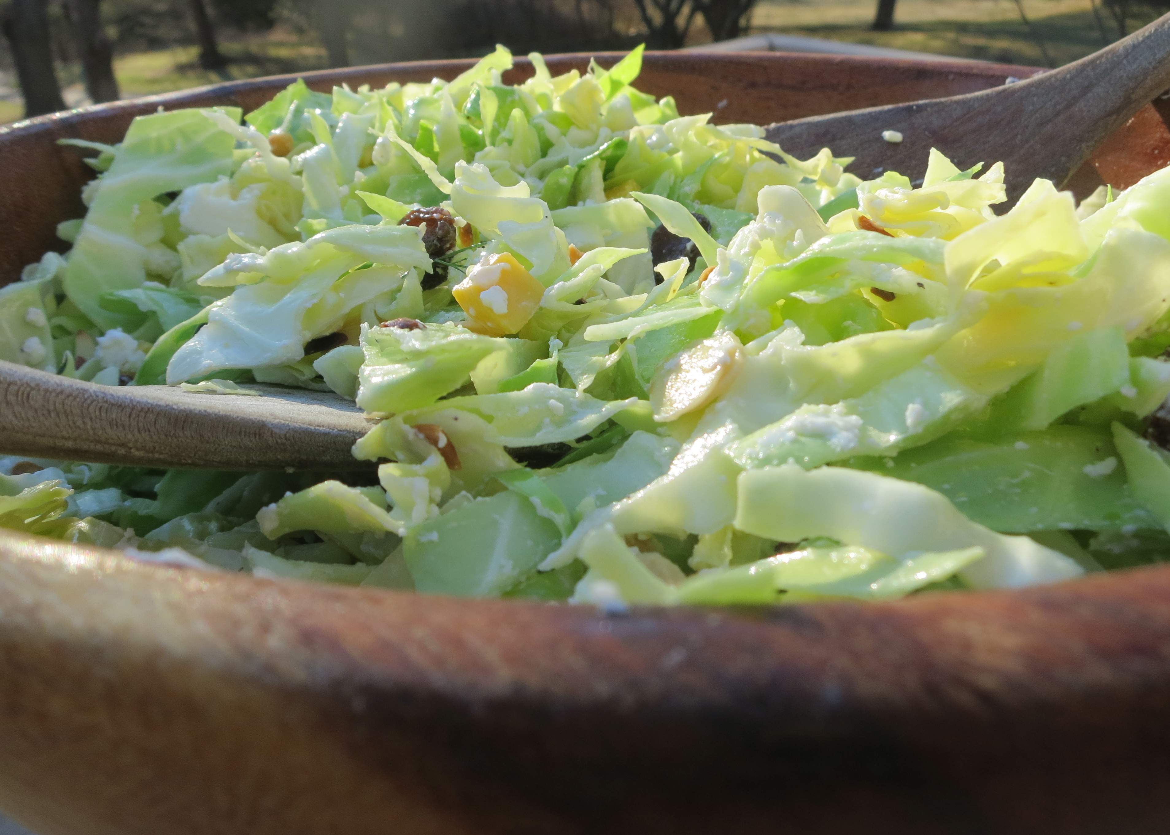 I’ve never really gotten the appeal of cole slaw. But recently I’ve had what I would call a cabbage revelation. After a lifetime of tasting and discarding terrible, mayo-heavy slaws, I’ve come to realize that recipes like this mayo-free Green Cabbage Salad with fresh mangoes, green raisins, goat cheese and honey vinaigrette are not just worth making, they’ll make you re-consider your whole opinion of cabbage altogether.
