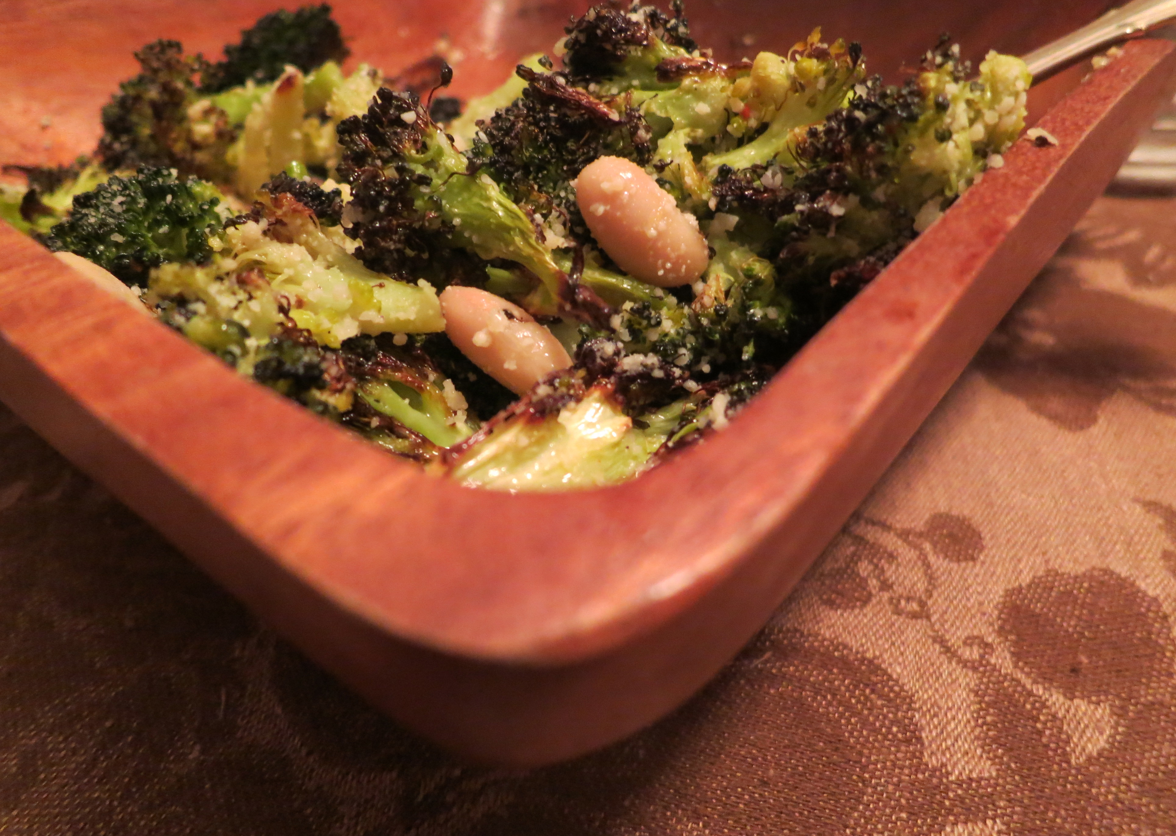 - Once broccoli has cooled, combine the anchovy and lemon dressing with the broccoli, beans and parmesan. Serve immediately.