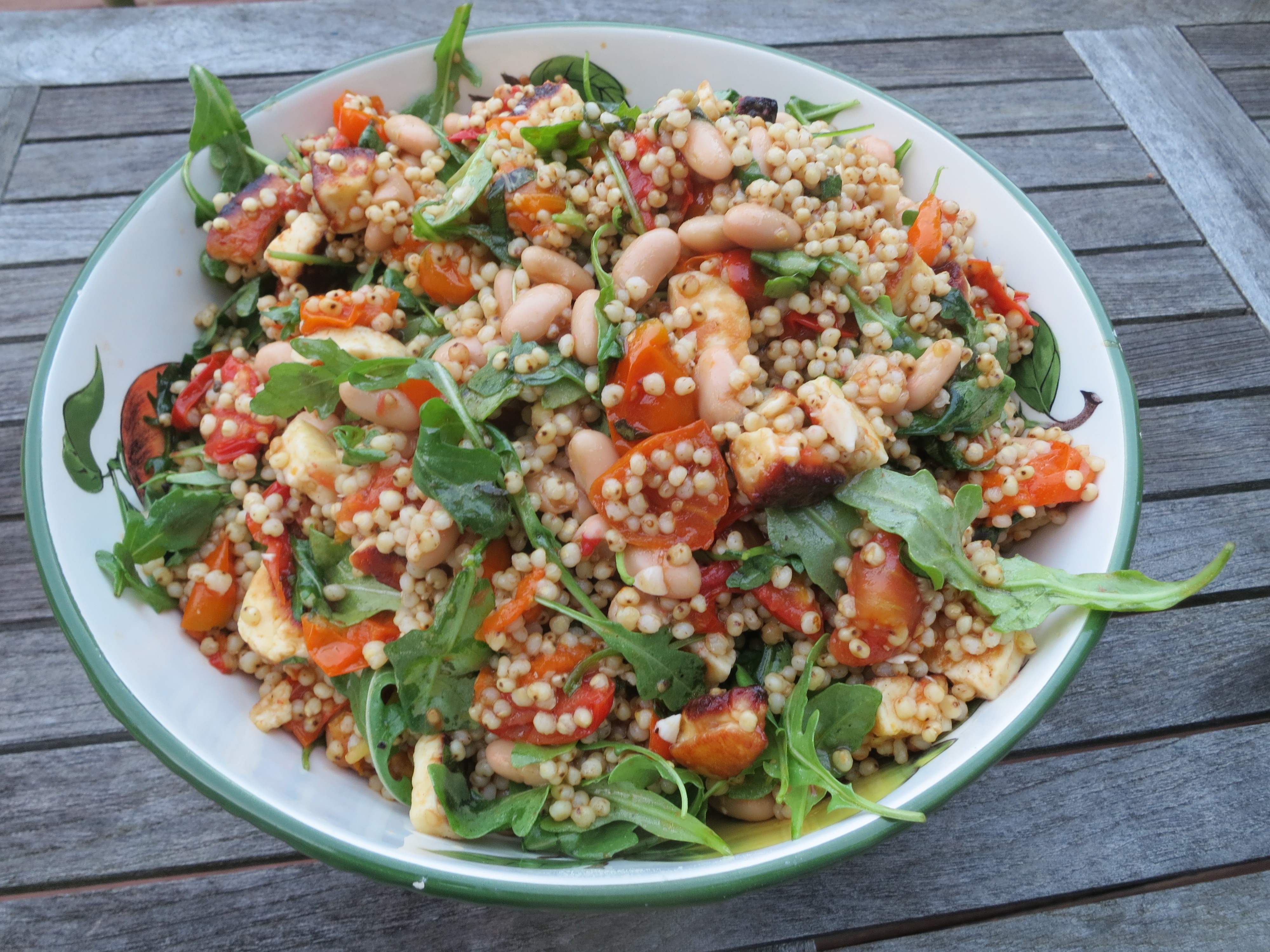 In creating this original dish, I opted for sorghum, a lesser known grain that has a similar shape and texture to couscous but is gluten free, pretty and nutritious.